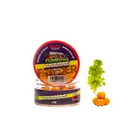 Ananas Wafters Smoke Dumbells der Köder ist sehr attraktiv aufgrund des Begasungseffekts (bei Kontakt mit Wasser erzeugt er eine fluoreszierende Wolke, die für Karpfen in der Gegend äußerst sichtbar und attraktiv ist) und die Form von Fässern. Sie bestehen aus Pop-up-Mix und sind sehr leicht zu schweben.