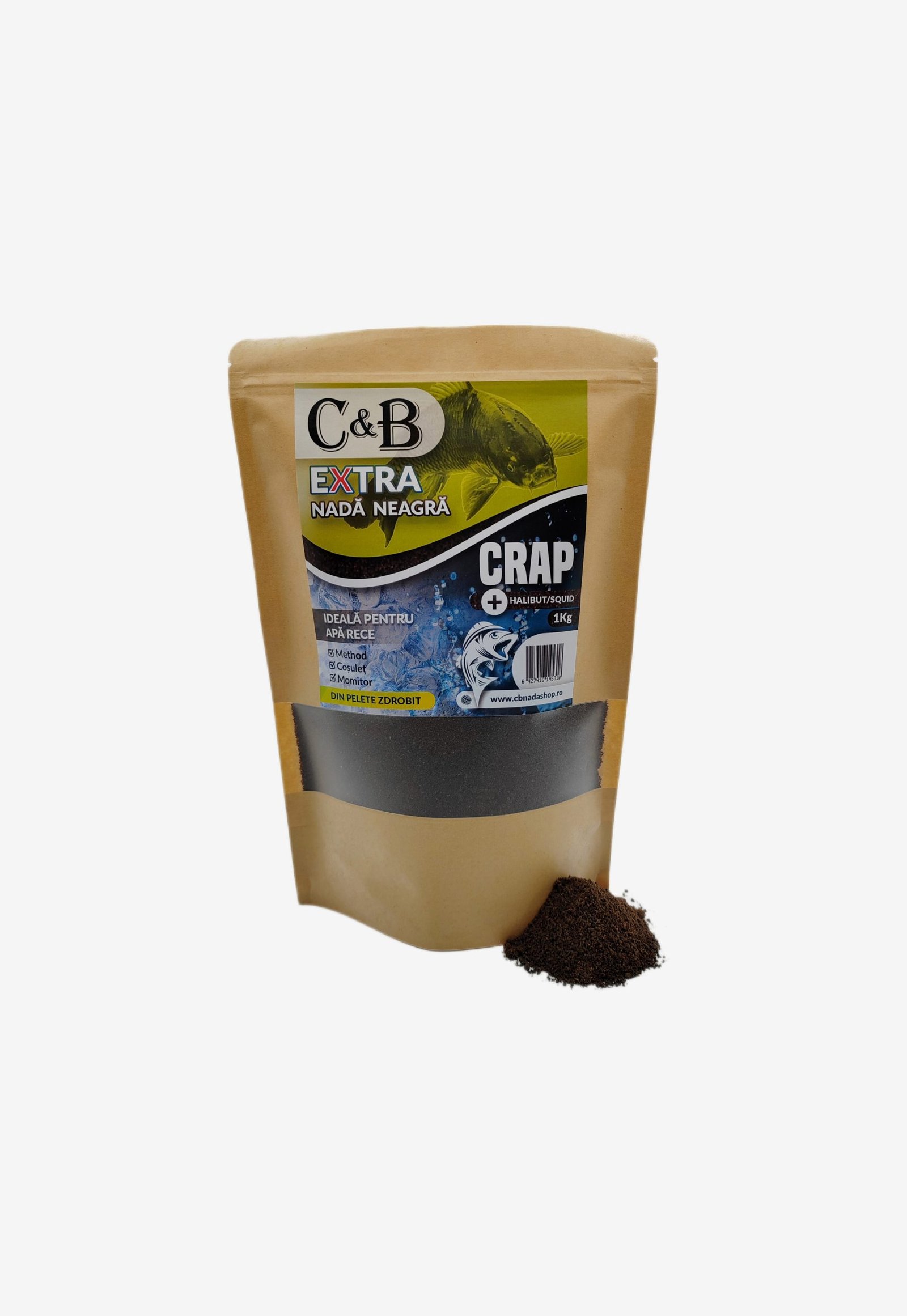 Black C&B Extra ist ein Groundbait aus zerkleinerten Hallibut und Squid Pellets. Dies wird für das Angeln mit Futterspirale, sowohl mit Körben oder Flats, in kalten Gewässern empfohlen. Durch die feine Textur und die schwarze Farbe eignet es sich zum Karpfenangeln im Frühling, Herbst und Winter.Black C&B Extra Carp Halibut Squid enthält Halibutt- und Tintenfischaroma, Fischmehl, Raps, Hämoglobinpulver, Melasse, Weizenkorndestillat, Monocalciumphosphat, Natriumchlorid und Calciumcarbonat.
