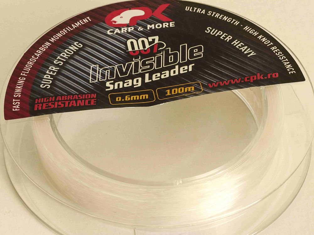 CPK Invisible Snag Leader ist ein Fluorkohlenwasserstoffdraht, der sowohl zum Binden von Schnüren beim Raubvogelfischen als auch zum Binden von Rigs beim Karpfenfischen verwendet werden kann. Unter den Eigenschaften, die es von anderen Fluorkohlenwasserstoffgarnen unterscheiden, erwähnen wir: perfekte Tarnung in Wasser, Beständigkeit gegen ultraviolette Strahlen, Beständigkeit gegen Abrieb, Beständigkeit gegen Bruch, hohe Empfindlichkeit und geringes Gedächtnis.