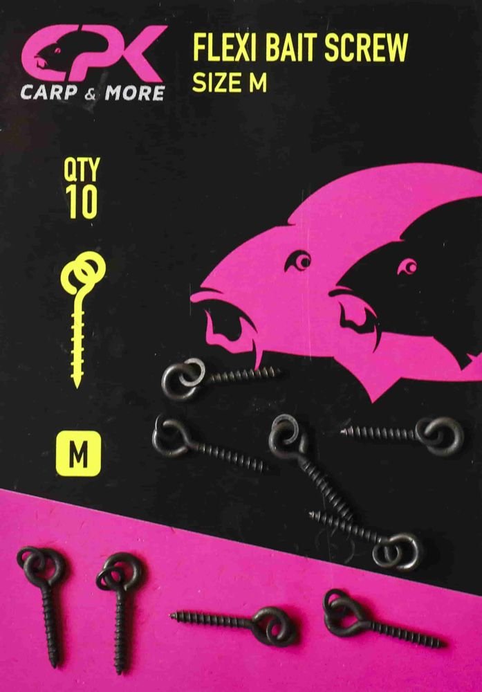 Flexi Bait Screw 9mm ist vIdeal zum Eindrehen von Pop Up´s, Tigernüssen,Boilies und Fake Baits. Durch den zusätzlichen Ring, an den das Hair befestigt wird, kann der Spike “sliden” und es wird somit eine natürliche Präsentation des Köders ermöglicht.