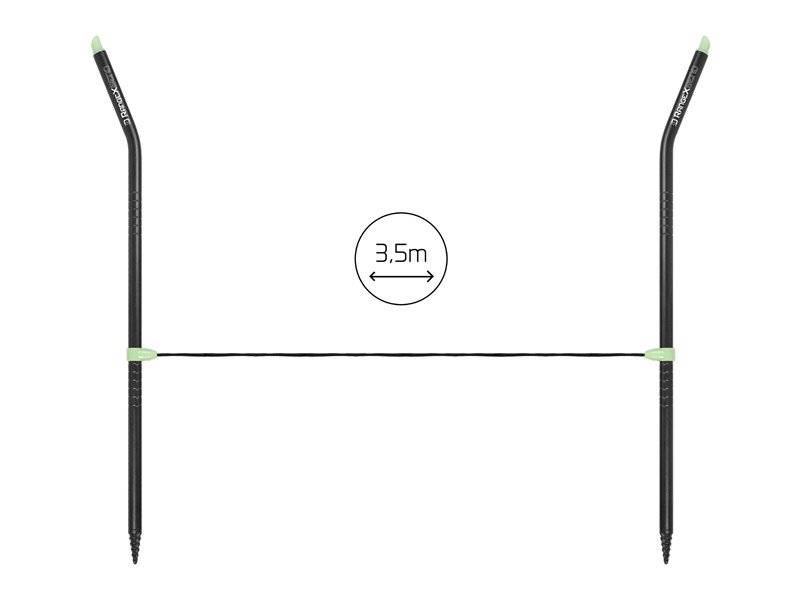 Für eine bessere Handhabung beim Einstecken in den Boden sind die Distanzstangen am unteren Ende mit einer festen Spitze mit Gewinde ausgestattet. Selbstverständlich gehört dazu auch ein 3,5 Meter langes Messseil, das an beiden Enden mit den Ösen zur Befestigung an den Stangen versehen ist. Das RangeX BEND wird in einer praktischen Textiltasche geliefert, damit Sie immer alles beisammen haben.